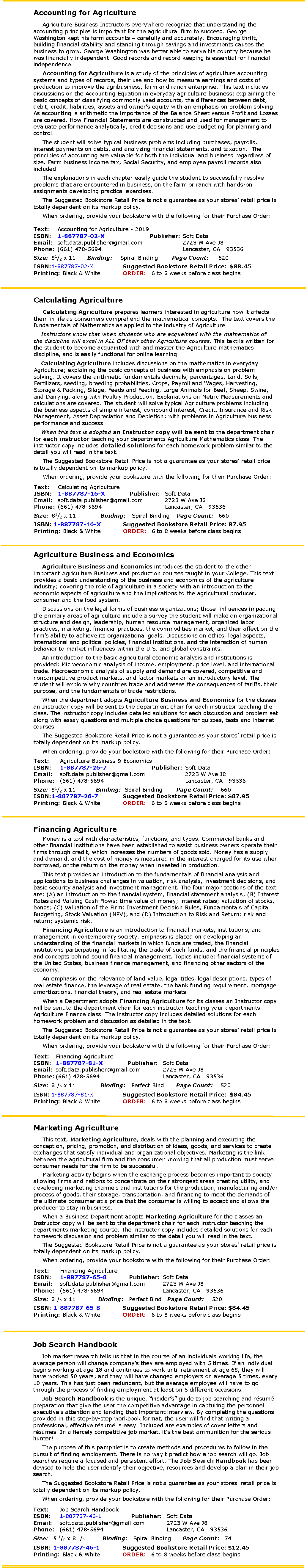 Select College Text Publisher for America’s Students and Teachers in Business and Agriculture